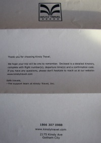 Letter from Kinsly Travel