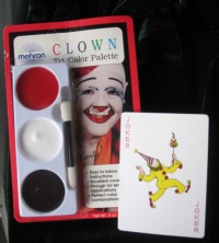 Even before the contest was over, a package was reported to have been received by highly-rated participants (the following photos are from Lem and Andrew Asberry), from the address 2140 North Hollywood Way Hollywood, CA. Velvet bags arrived in a large envelope, each containing clown makeup kits, Joker cards, and a note from the Joker: